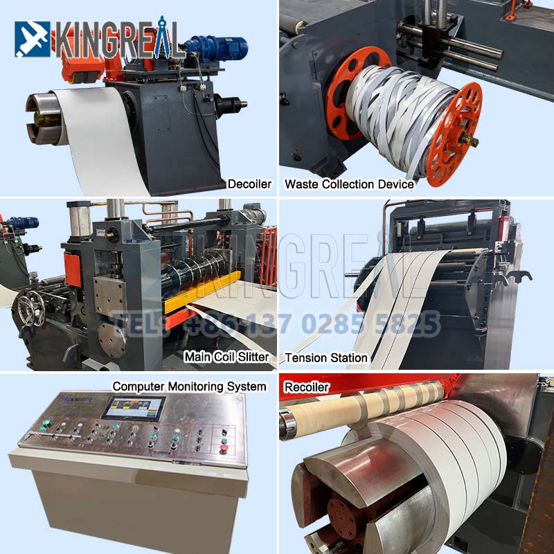 KINGREAL STEEL SLITTER 850MM Steel Coil Slitting Machine är speciellt designad för 850 mm breda metallspolar, som effektivt och exakt producerar smala remsor med hög precision. KINGREAL STEEL SLITTER har åtagit sig att förse kunderna med kompletta produktionslösningar för stålspolskärningsmaskiner.